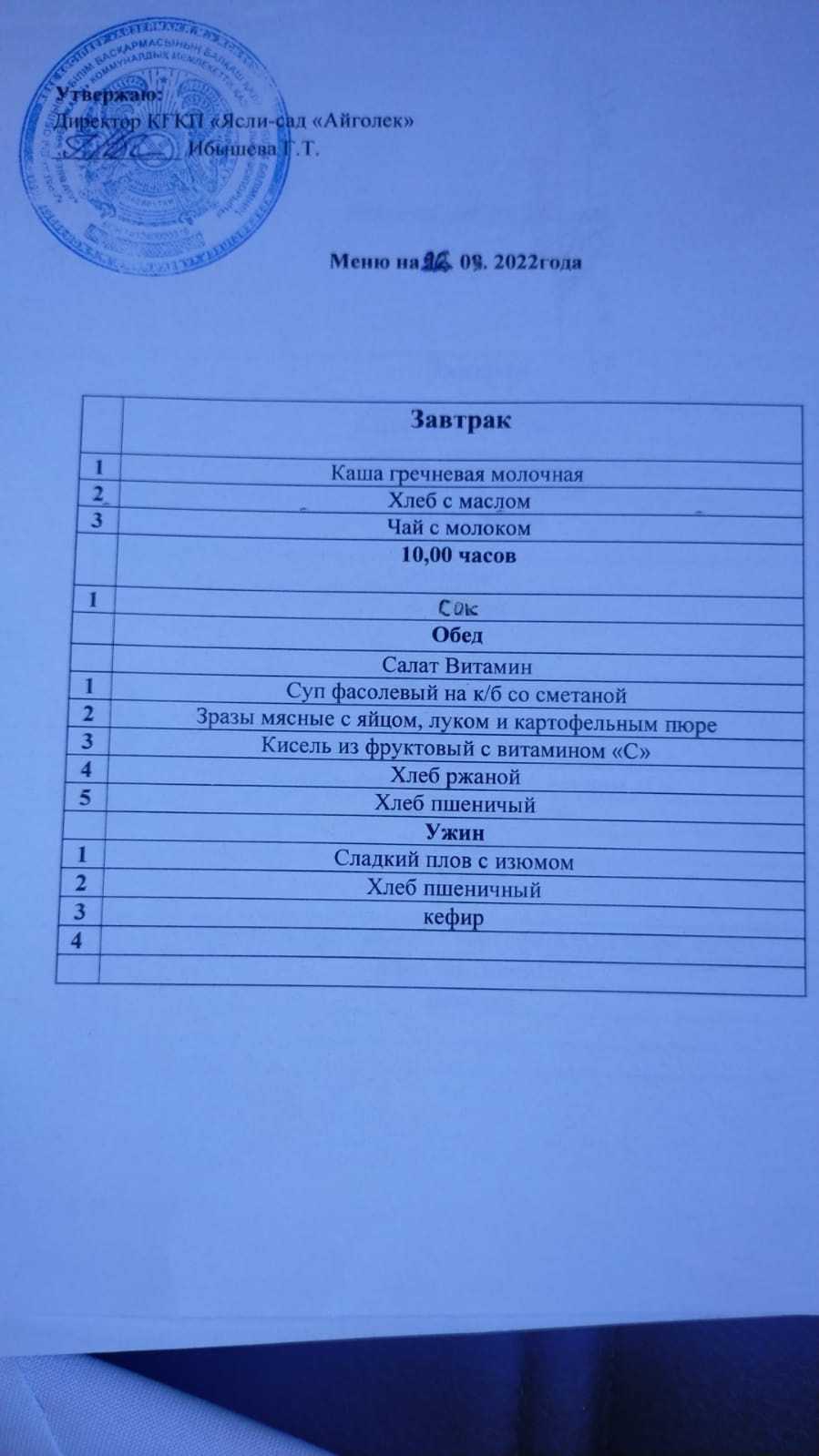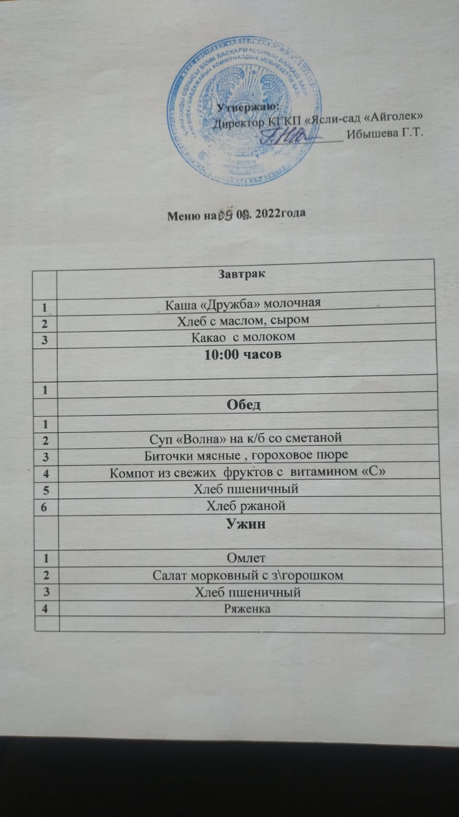 меню 09.09.2022