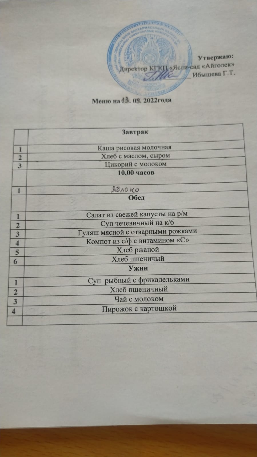 Меню 13.09.2022