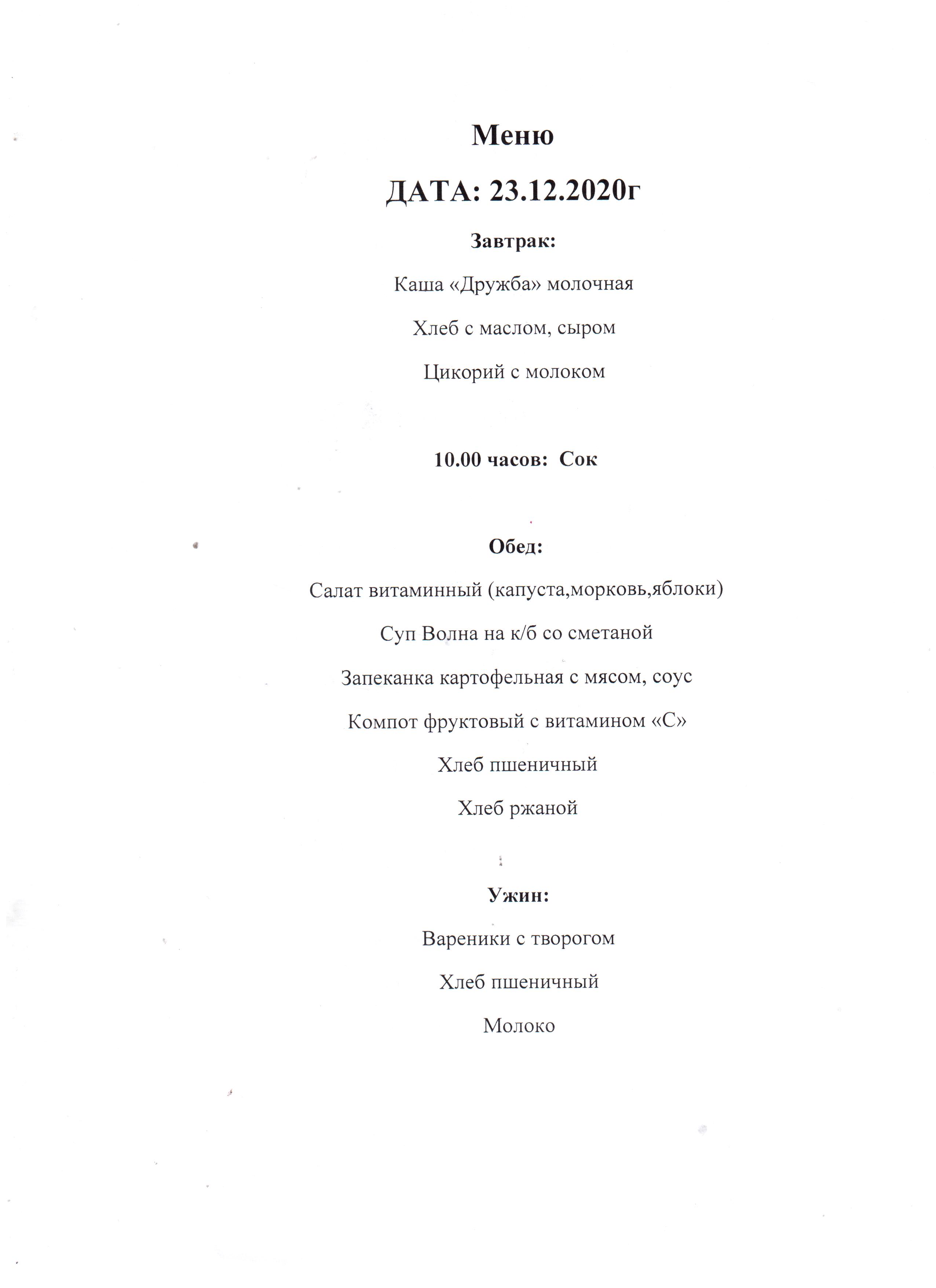 Меню на 23.12.20г