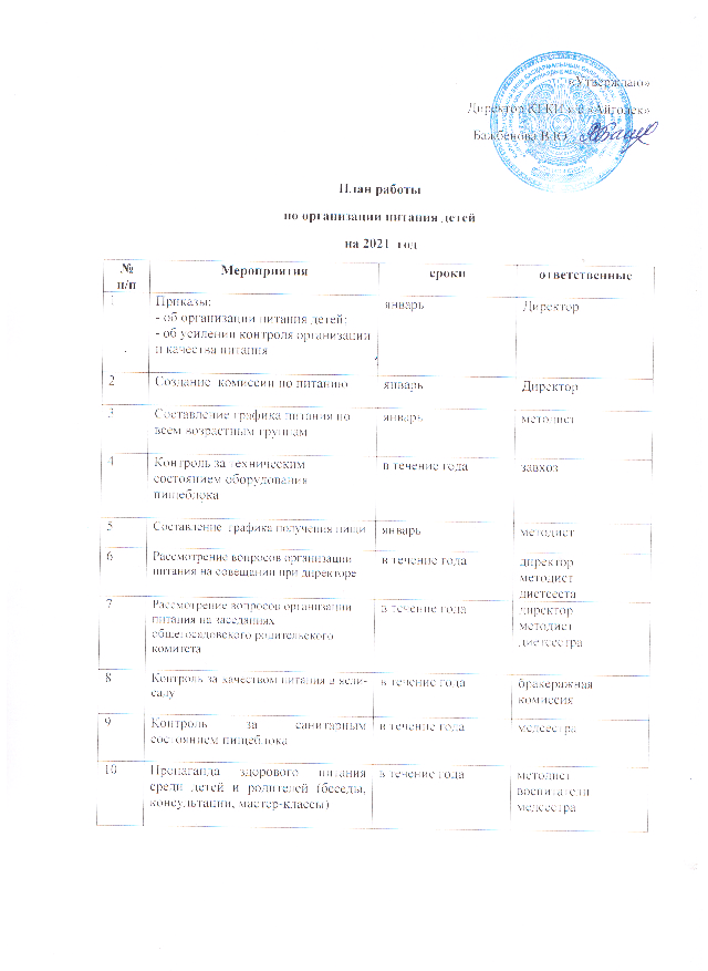 План работы по организации питания детей на 2021годПлан работы по организации питания детей на 2021год |