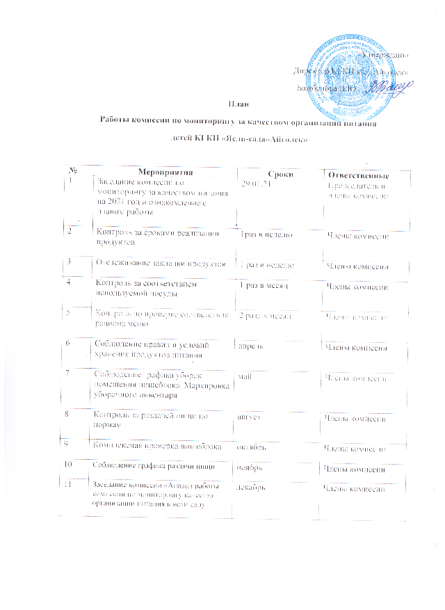 План работы комиссии по мониторингу за качеством организации питания детей КГКП "Ясли-сада "Айгөлек"План работы комиссии по мониторингу за качеством организации питания детей КГКП "Ясли-сада "Айгөлек" |