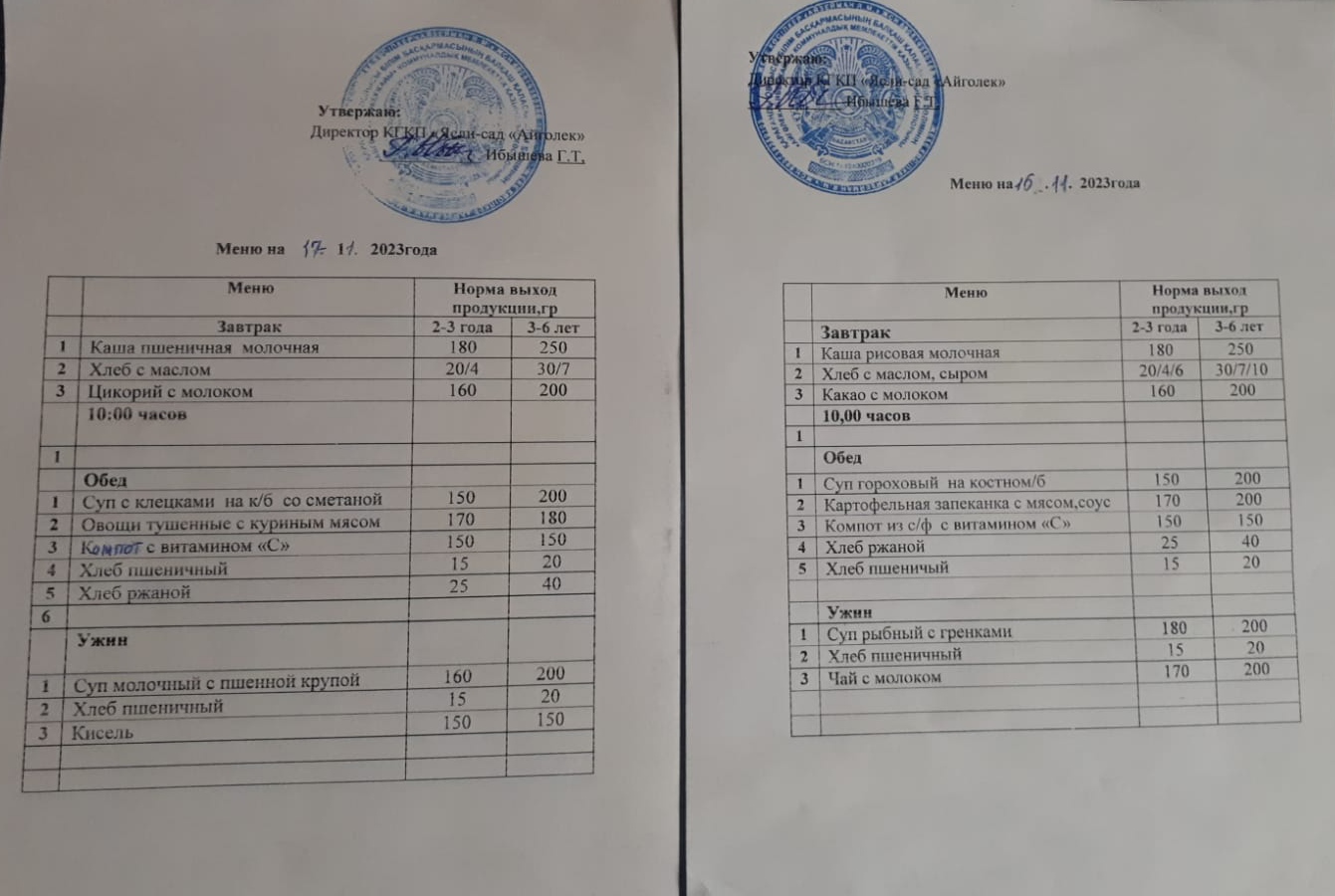 Акт Бракеражной комиссии от 10.02.2023г.Цель: Отслеживание соответствия с нормами и калорийностью блюд. Заполнение виртуального склада и списания продуктов по порталу indigo24kz. Взвешивали контрольное блюдо, соответствует выходу порции, вкус супа наваристый, вкусный, меру посоленный. Заполнение виртуального склада ведется вовремя, ежедневно списываются продукты по фактический прибывших детей. |