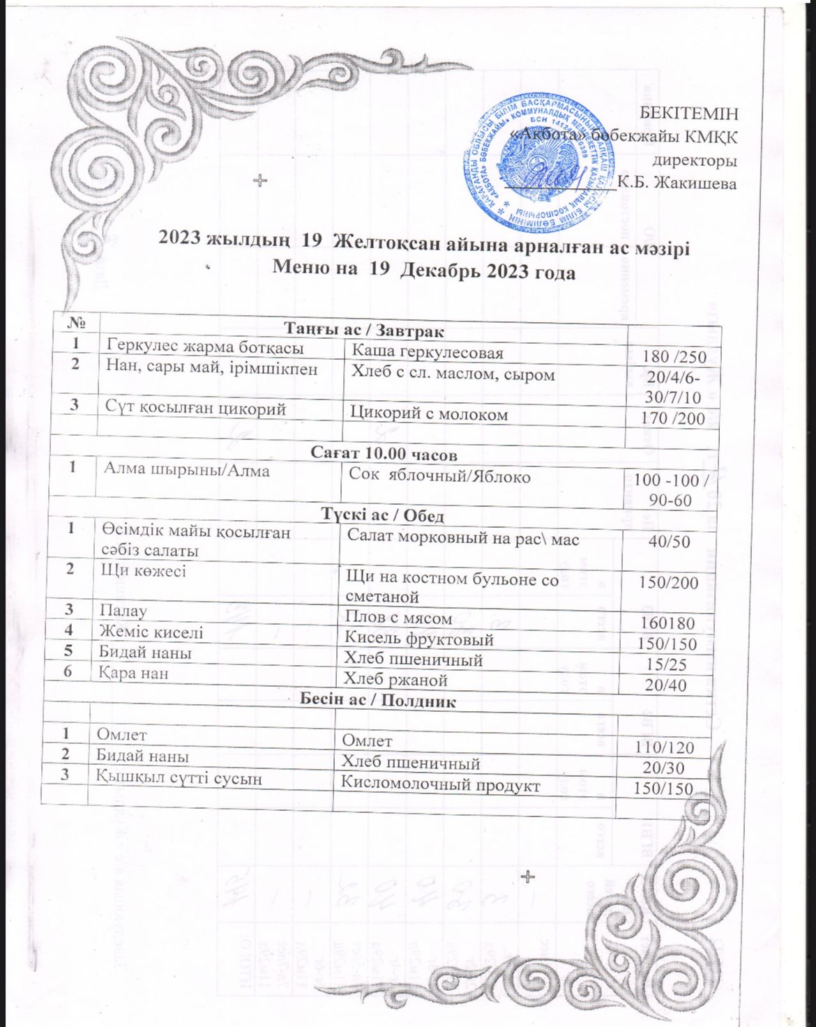 Ас мәзірі 19..12.2023 жыл
