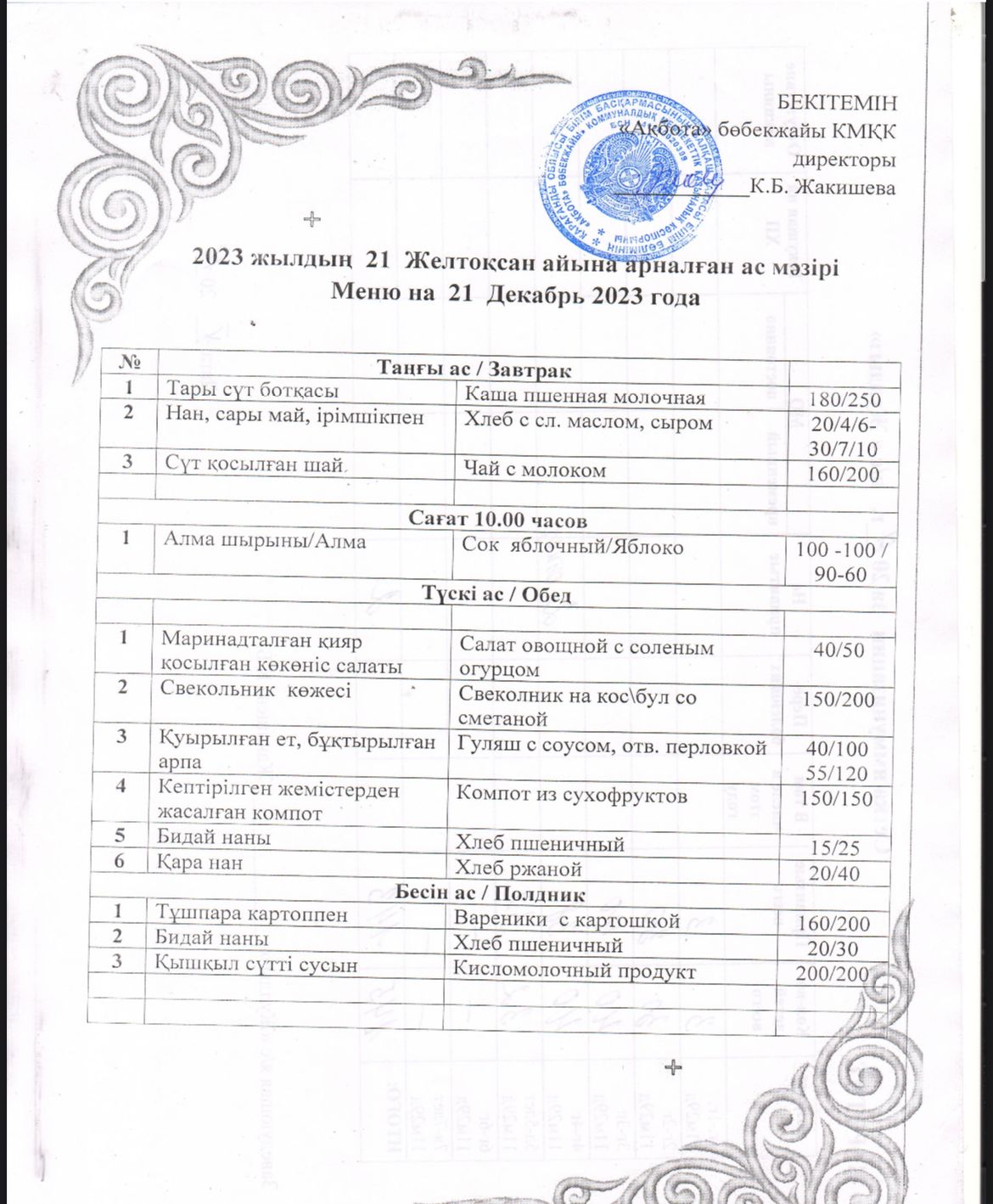 Ас мәзірі 21.12.2023