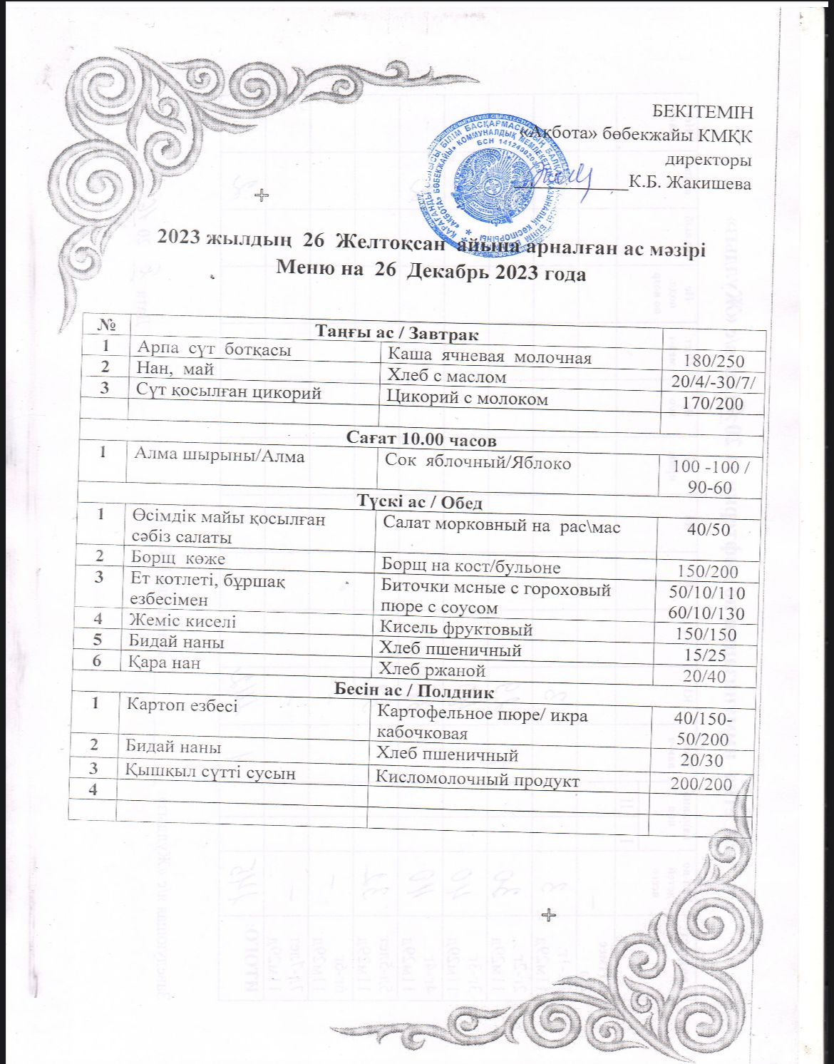 Ас мәзірі 26.12.2023