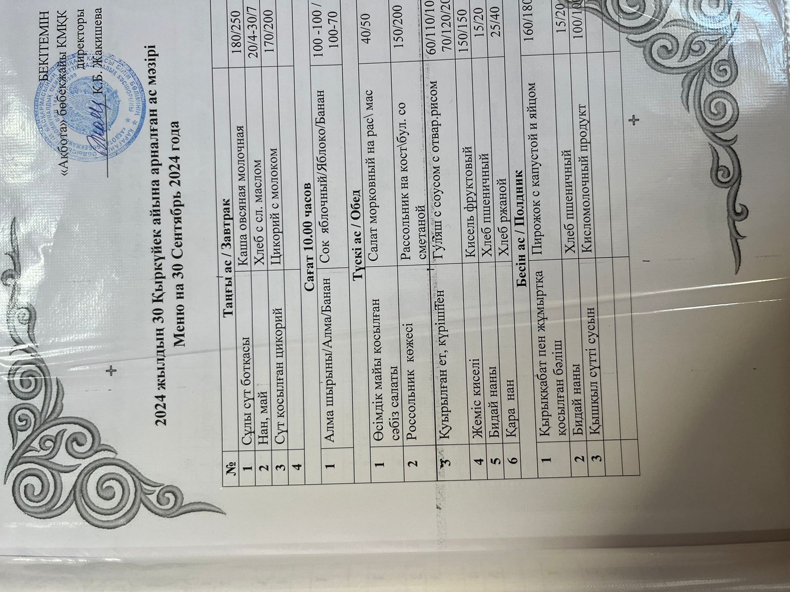 Ас мәзірі 26.09.2024