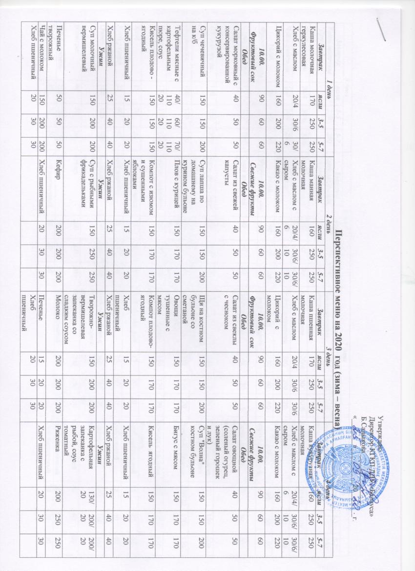 Перспективное меню на зимний, весений периодПерспективное меню КГКП "Ясли-сад "Балауса" зима-весна |