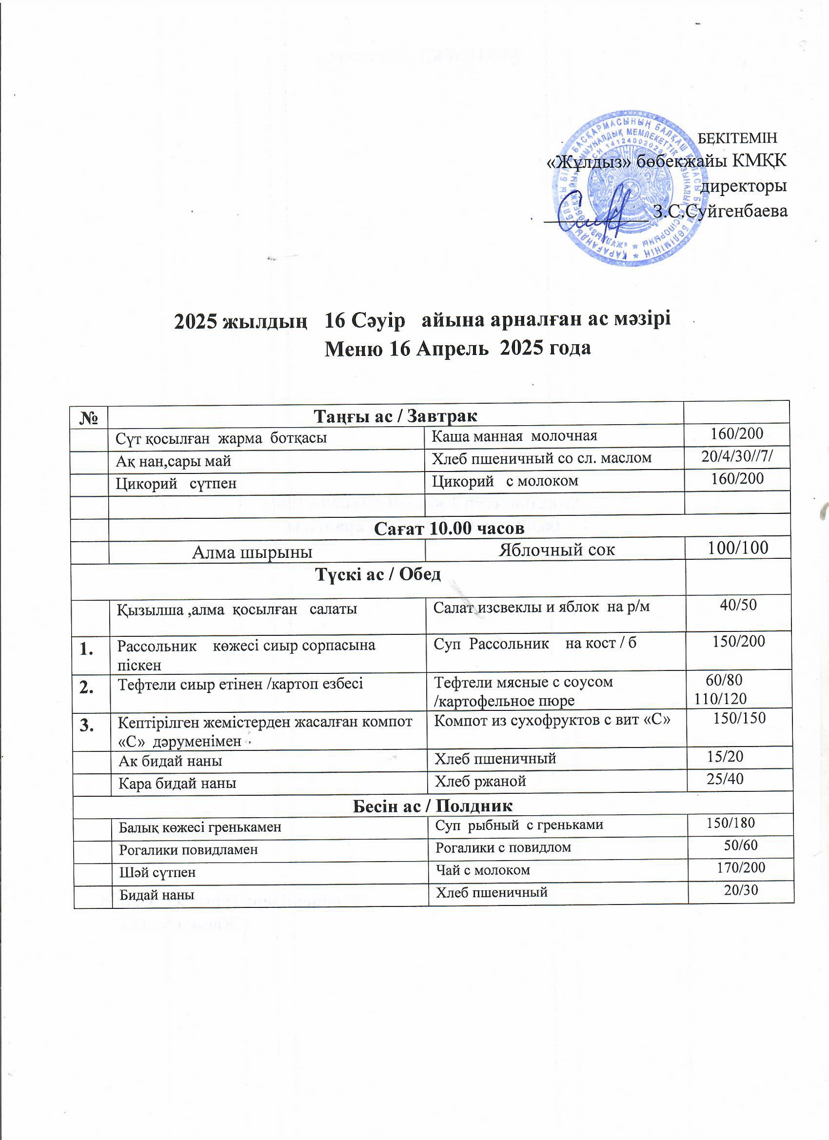 Ас мәзірі16.04.25 |
