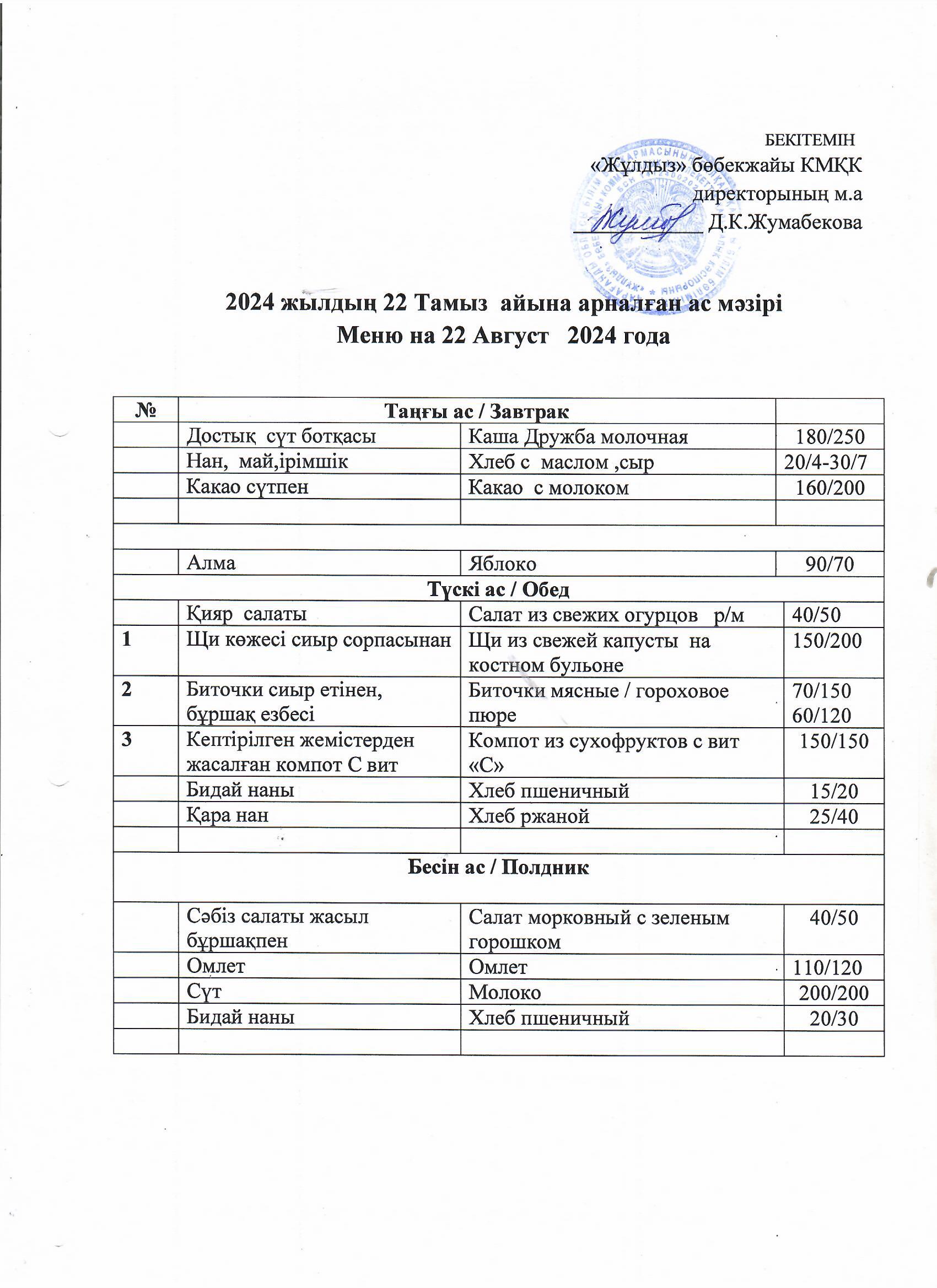 Ас мәзірі22.08.24 |