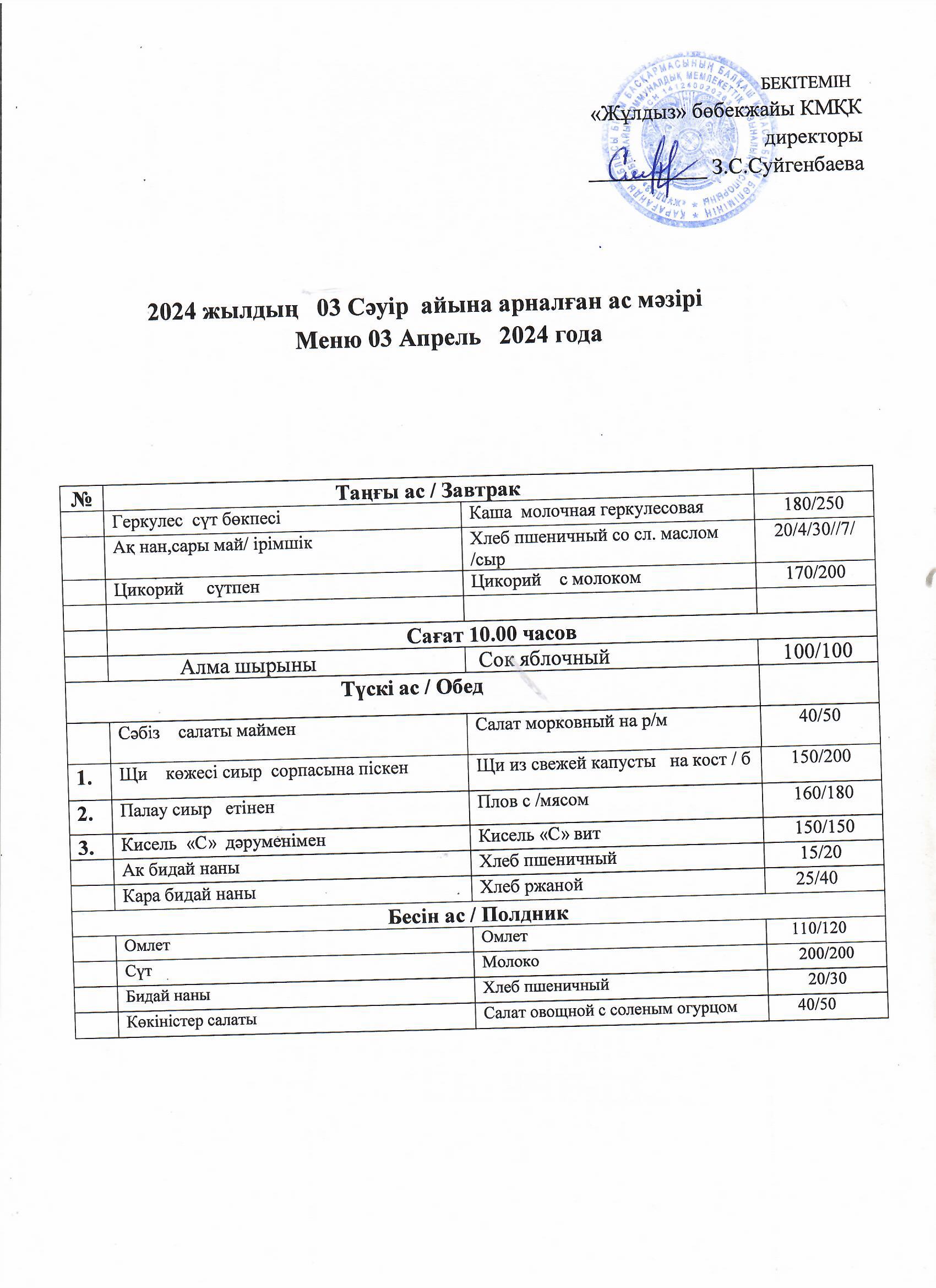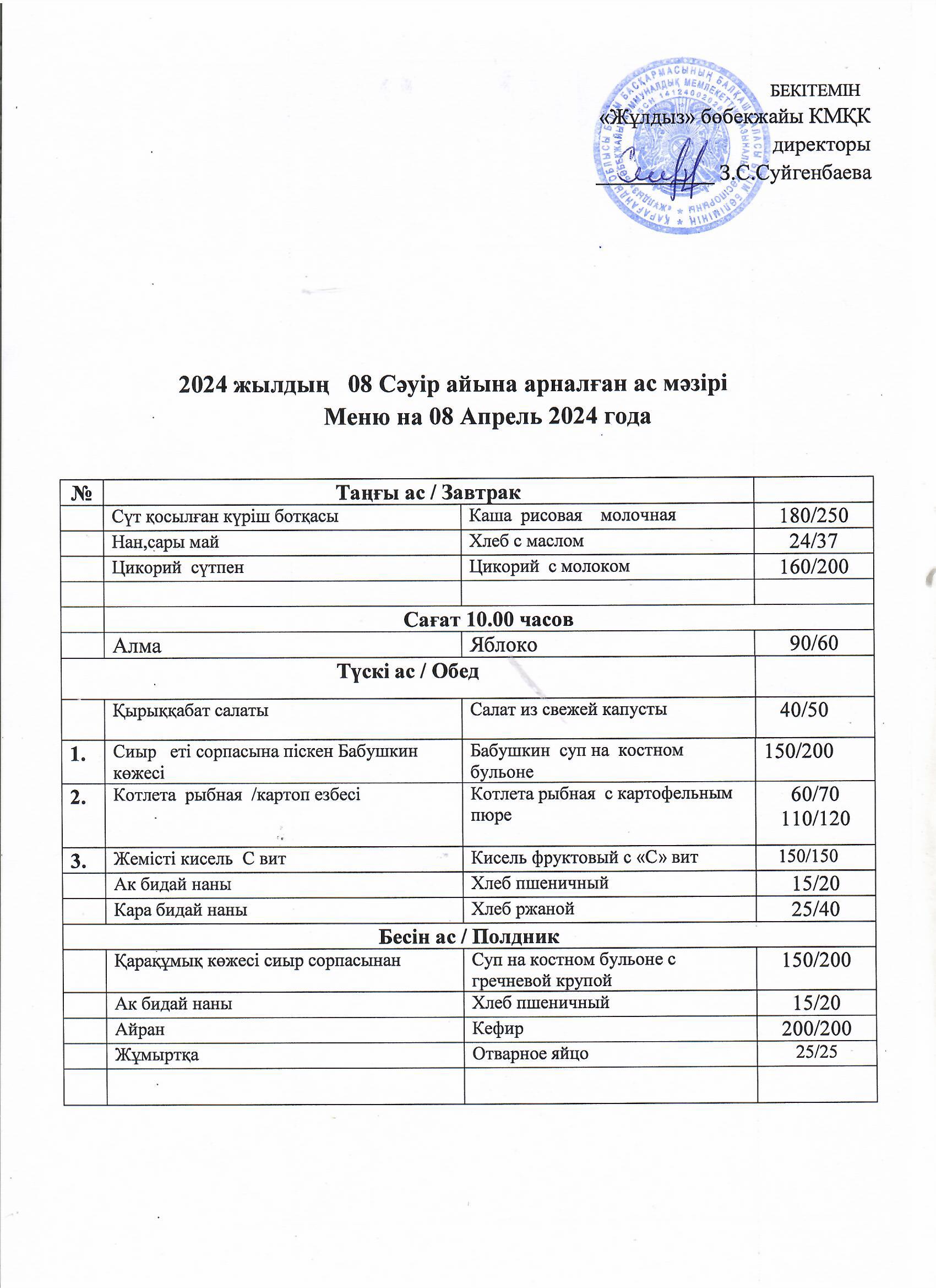 Ас мәзірі08.04.24 |
