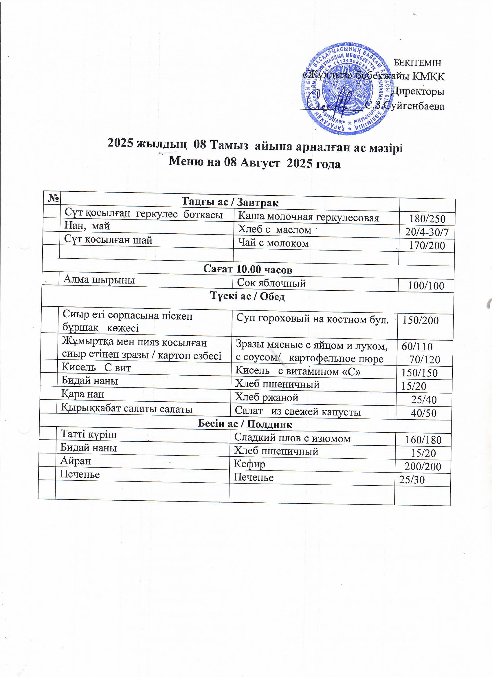Ас мәзірі08.08.25 |