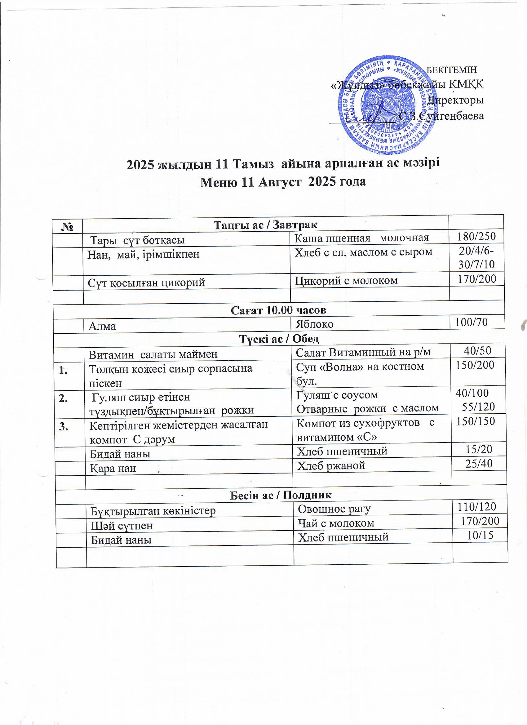 Ас мәзірі11.08.25 |