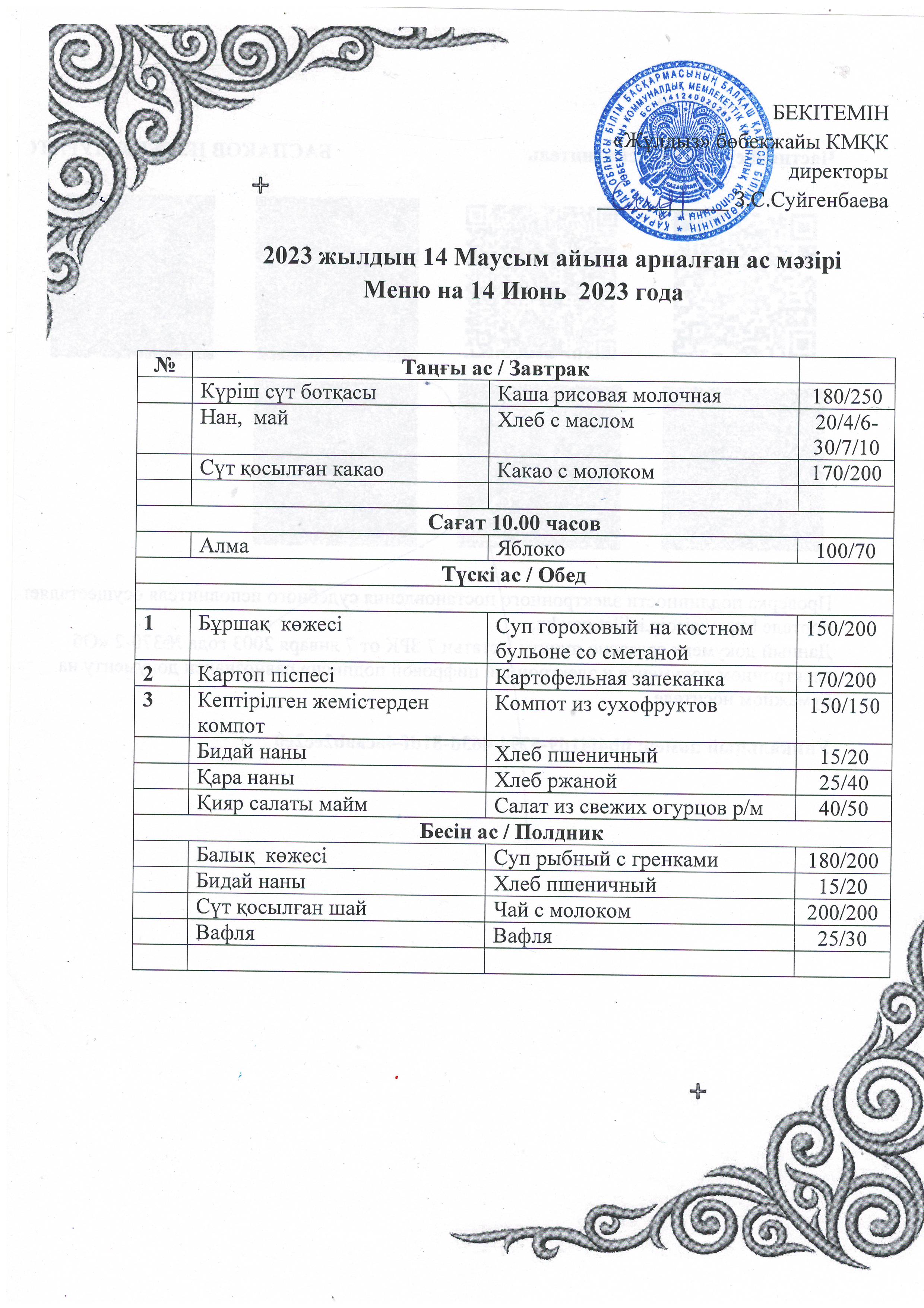 Ас мәзірі14.06.2023ж. |