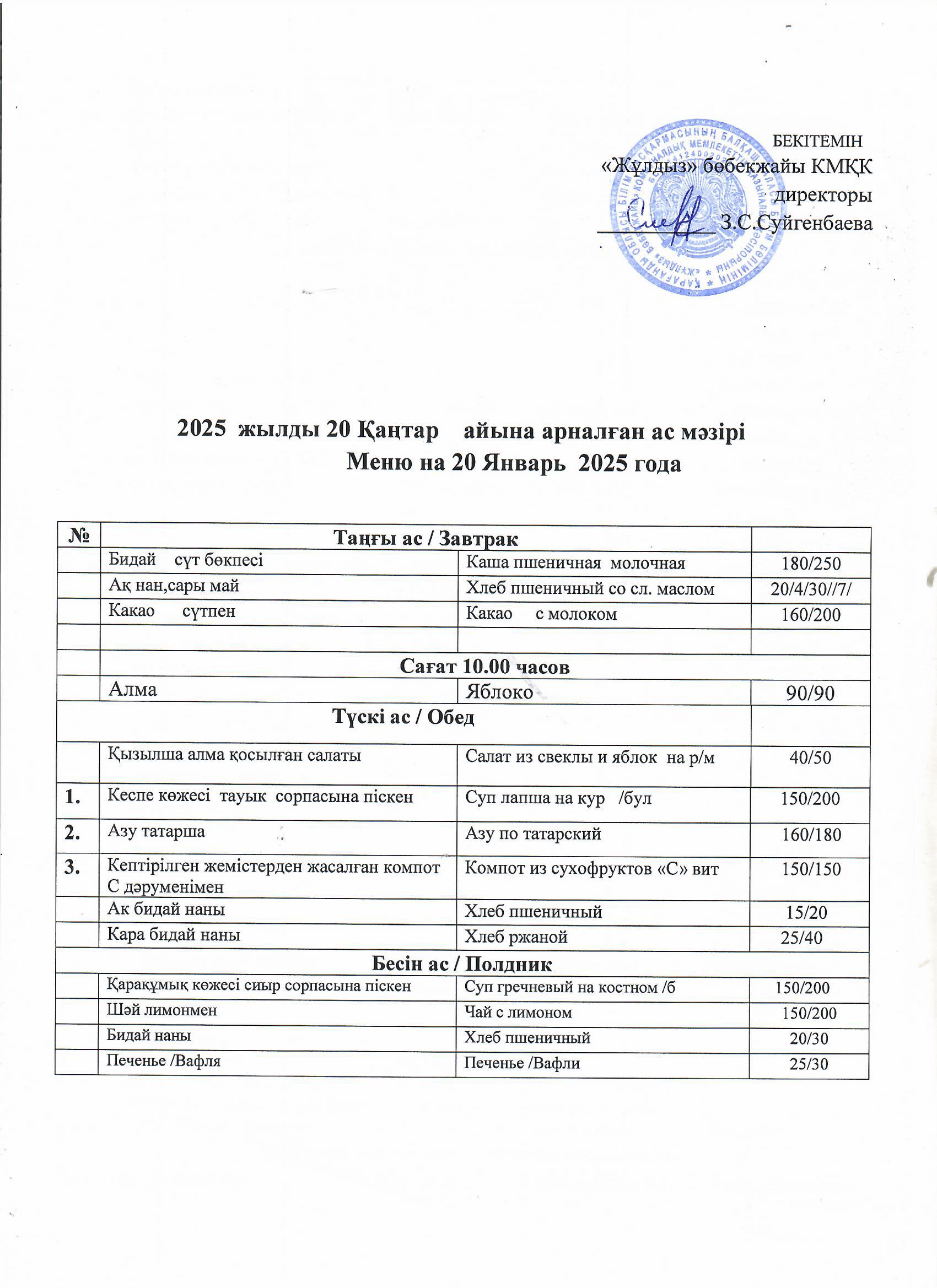 Ас мәзірі20.01.25 |