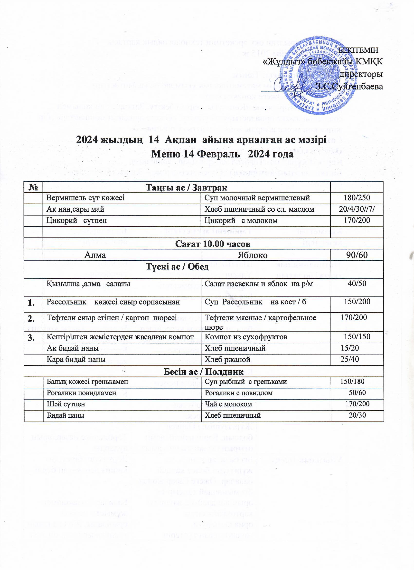 Ас мәзірі14.02.2024 |
