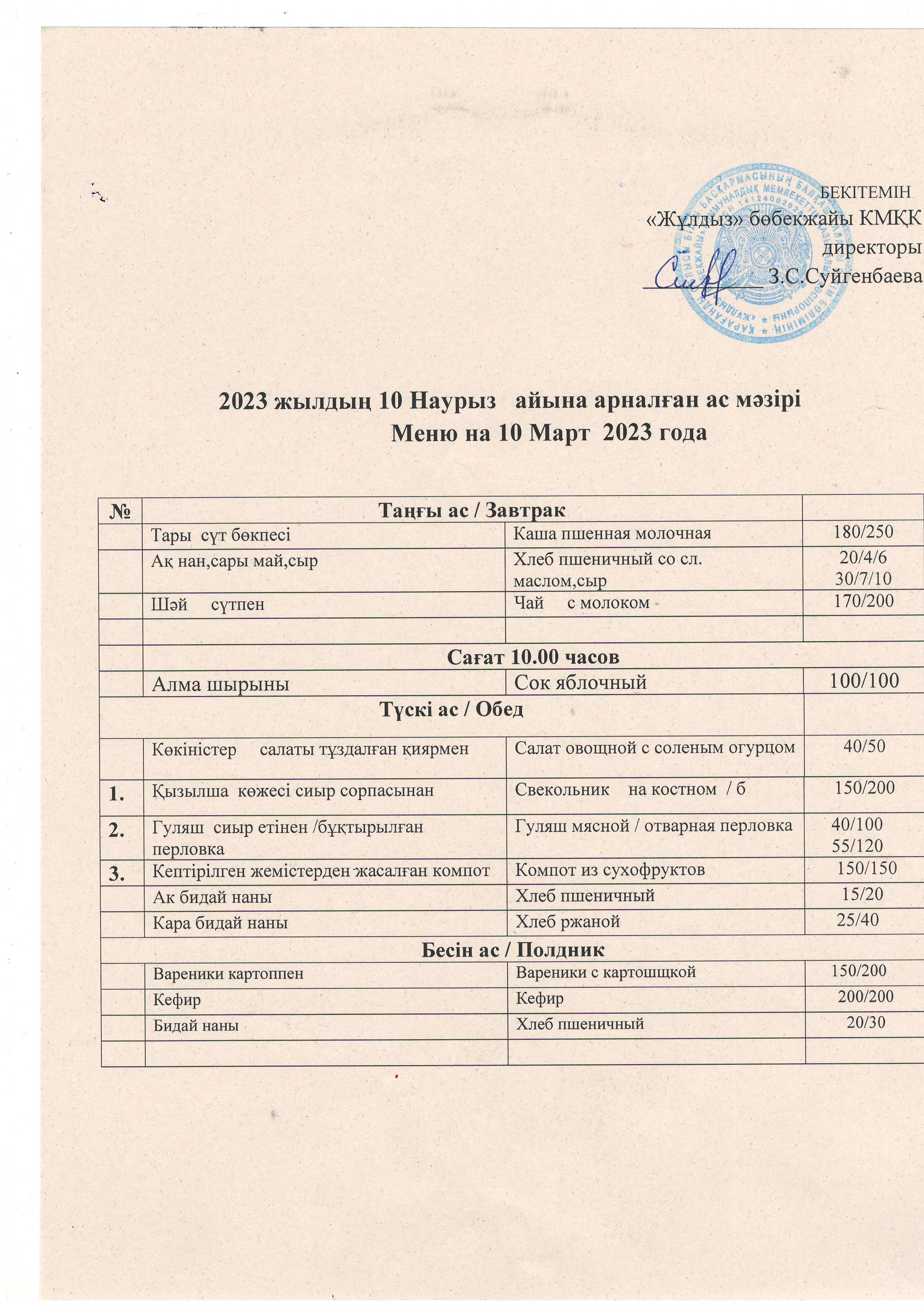 Ас мәзірі10.03.2023 |