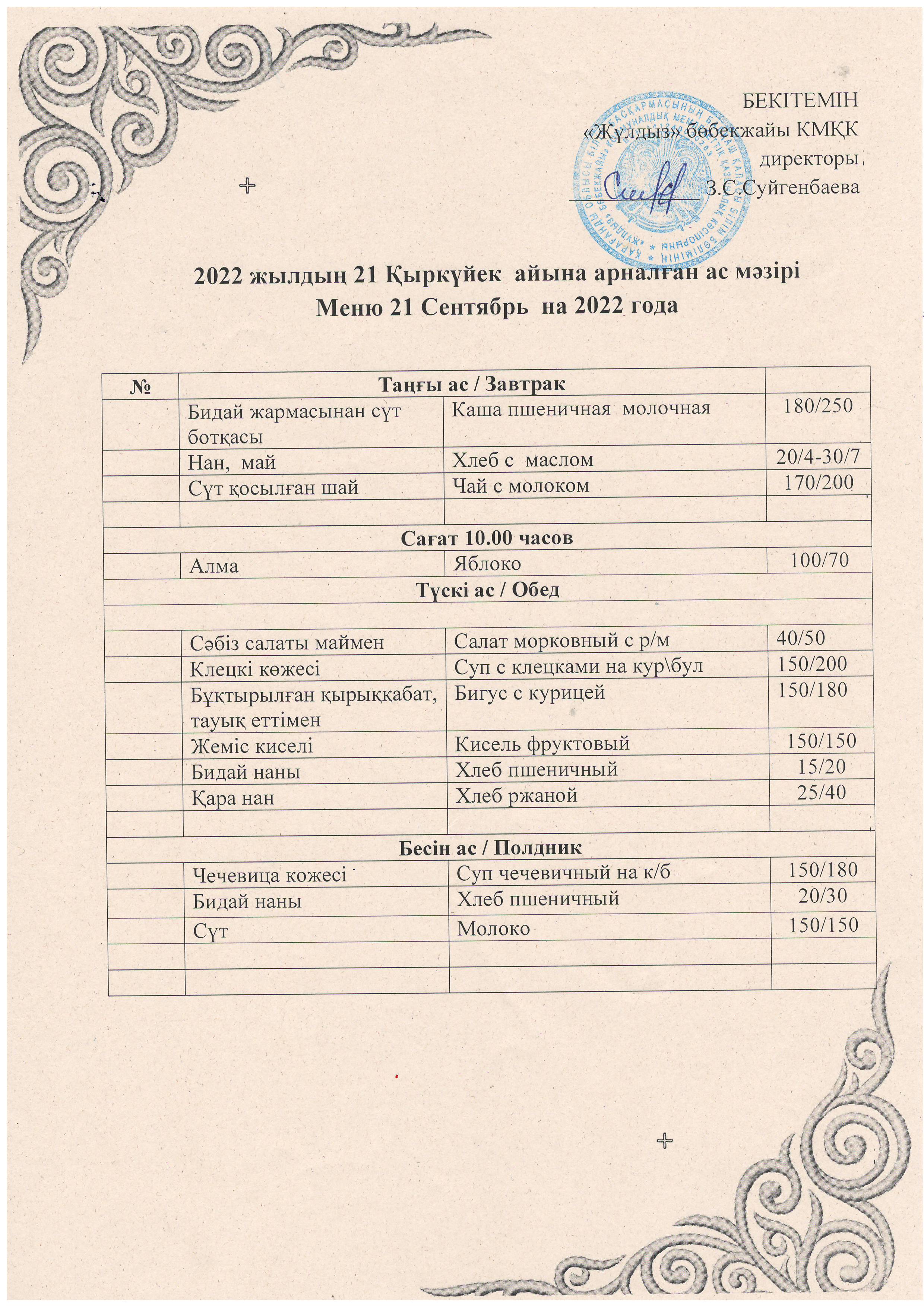 Меню21.09.2022 |