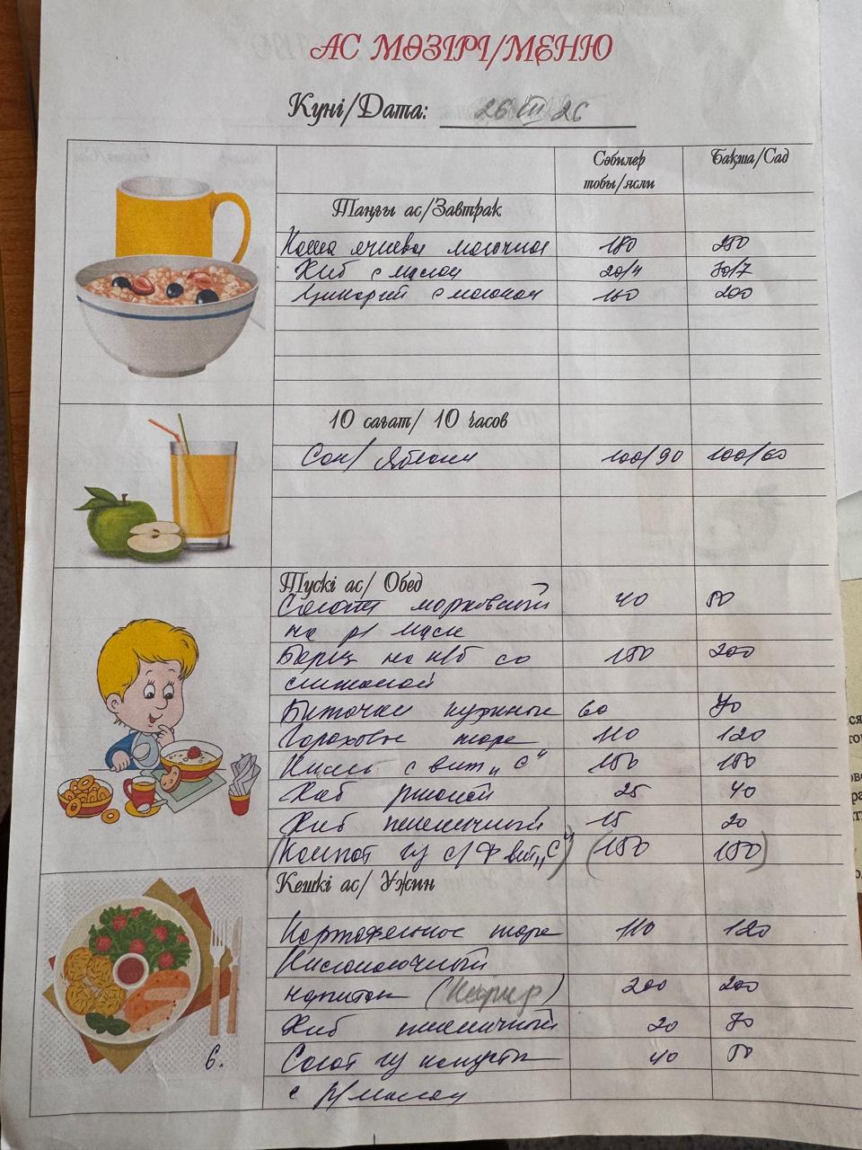 Меню на 25.09.2025Астарыңыз дәмді болсын! |