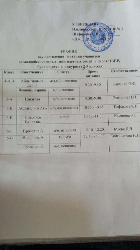 Асханадағы мұғалімдер кестесі. |