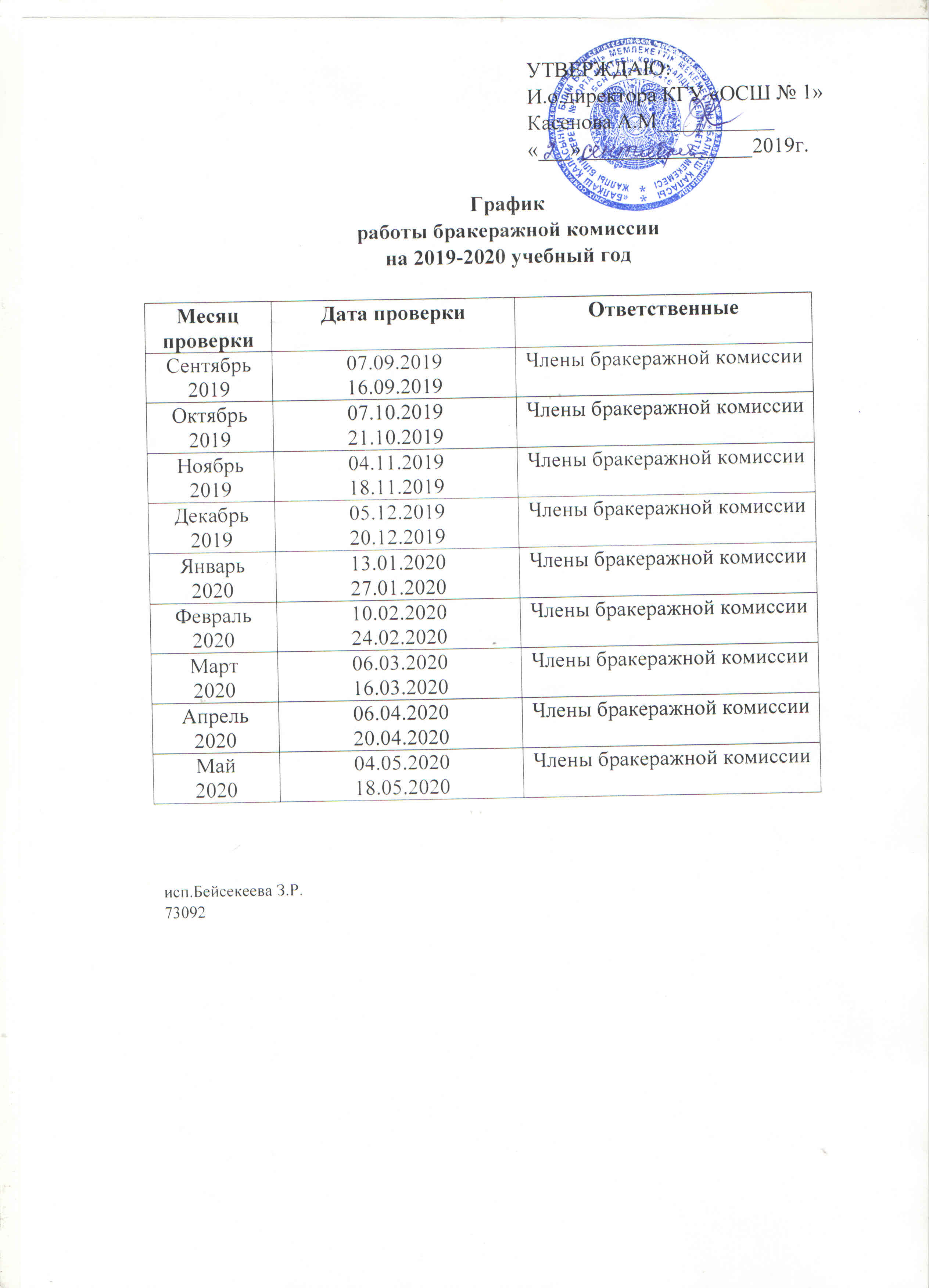 2020-2021 оқу жылына арналған неке комитетінің жұмыс кестесі. |