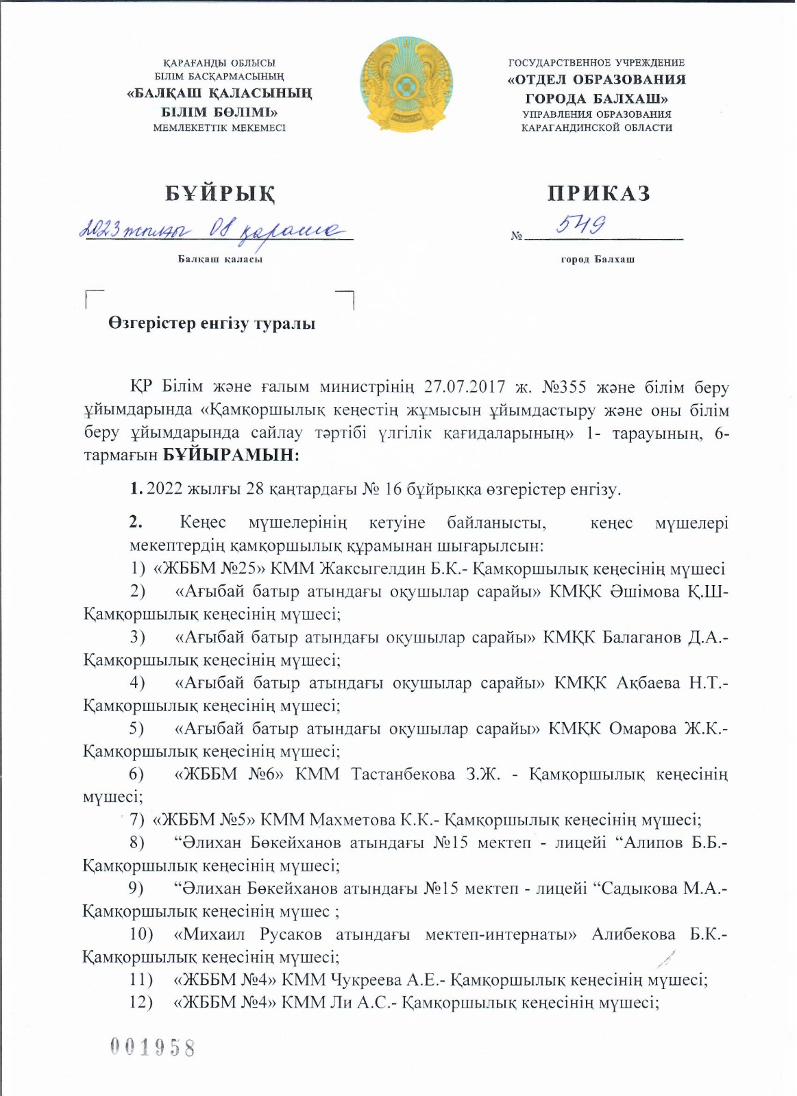 Приказ №403проведение конкурса по отбору кандидатов в Попечительский совет школ города Балхаш. |