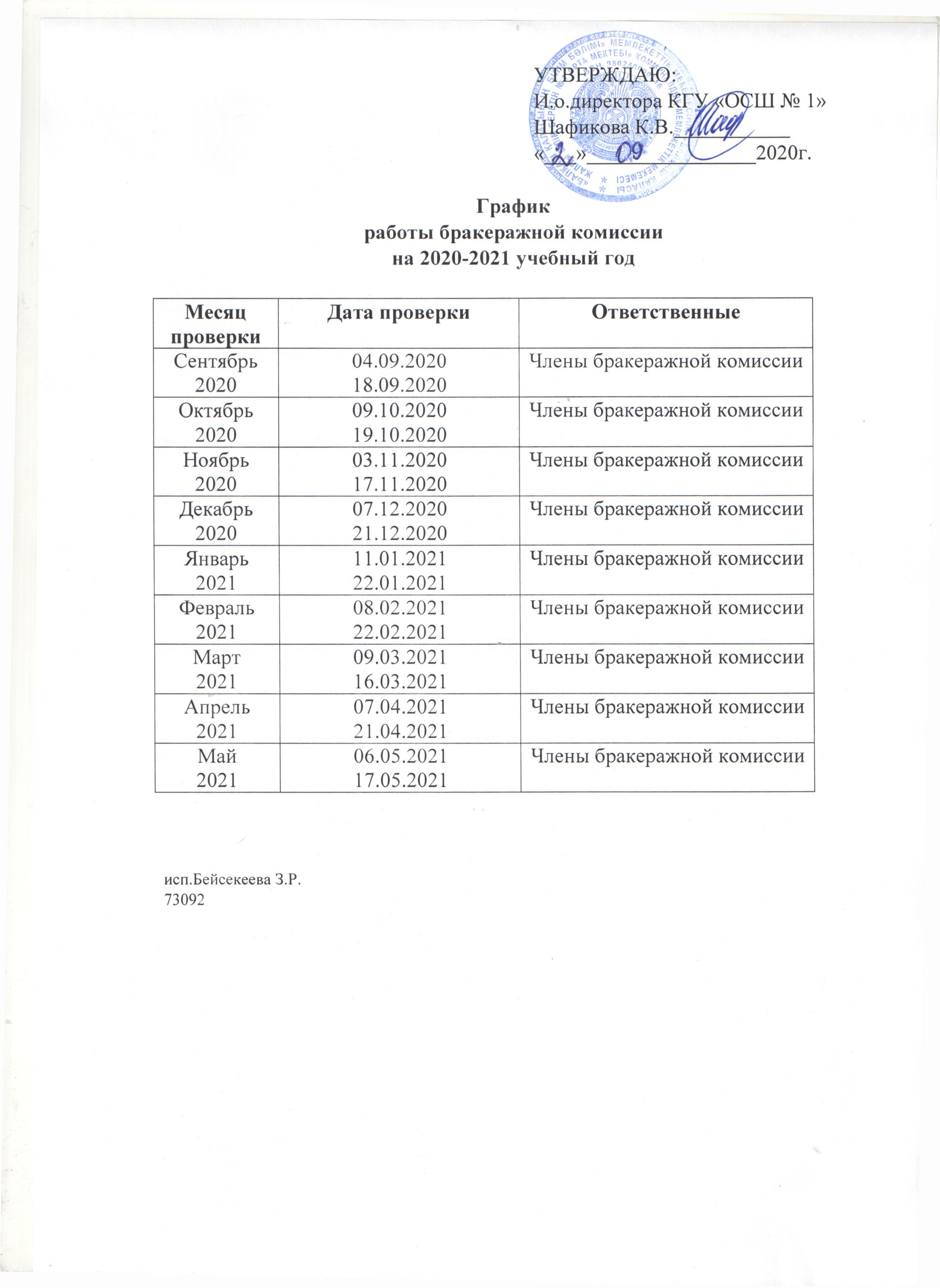 График работы бракеражной комиссии на 2020-2021 учебный год. |