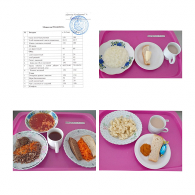 Меню на 09.04.2021 года