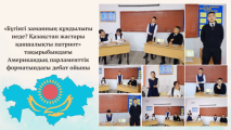 15.01.2024, «В чем ценность сегодняшнего возраста?» Была проведена дискуссионная игра на тему «Насколько патриотична молодежь Казахстана». Игра в дебаты была основана на американском парламентском формате (APF). В ходе игры рассматривалась важность воспитания молодого поколения при сохранении преемственности национальных благ и общечеловеческих ценностей, духовного и культурного наследия.
