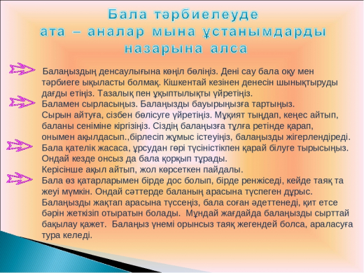 Балалар тәрбиелеуде ата-аналар мына ұстанымдарды назарына алса