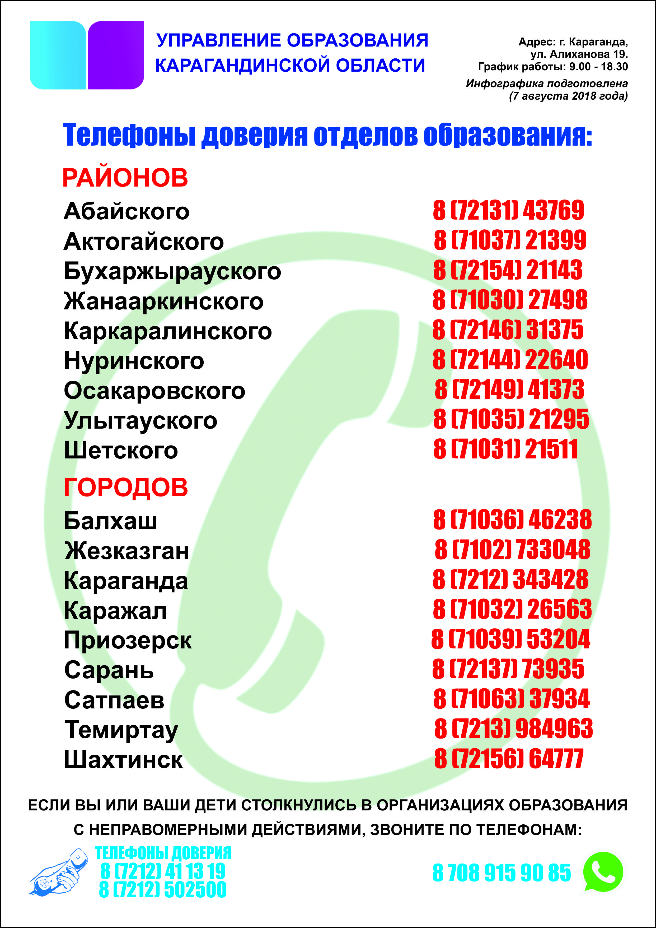 Телефоны доверия отделов образованияТелефоны доверия отделов образования |