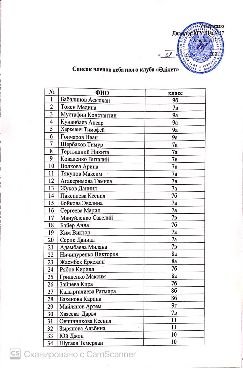 Другим важным направлением программы социализации является создание в нашей школе дебатного клуба «Адилет» (создан по приказу директора №90/2 от 01.09.2021г.)