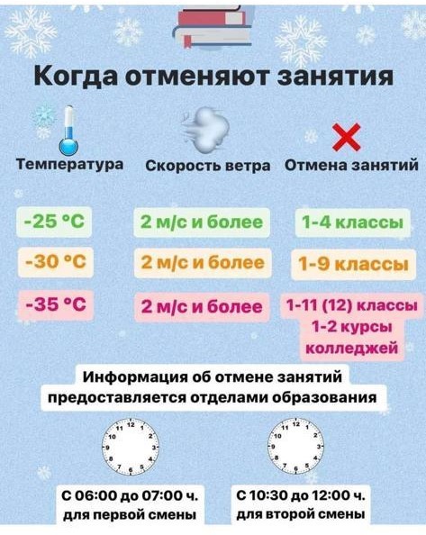 Памятка по отмене занятий...Памятка о температурном режиме занятий в организациях образования в зимний период |