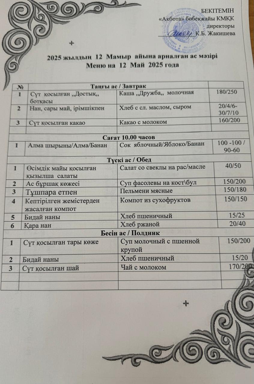 МЕНЮ 12.05.2025Ас мәзірі 12.05.2025 |